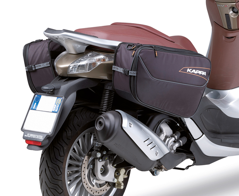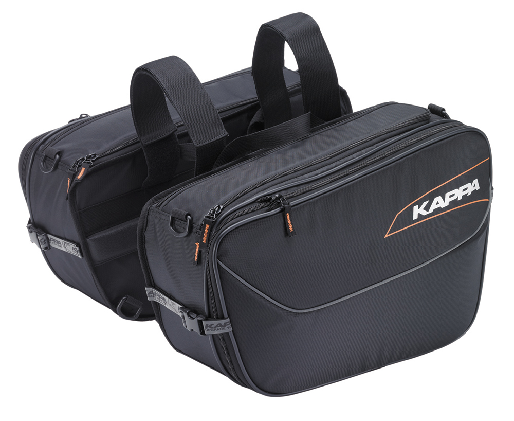 Podesive i proširive tekstilne bisage. Obe strane imaju mogućnost proširivanja, što povećava zapreminu sa 16 na 25 litara. Uz bisage se dobija i presvlaka za zaštitu od kiše.